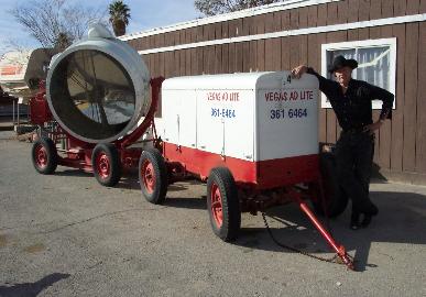 Floyd Olson of Hollywood Ca. Floyd has been running searchlights in Hollywood for many years. He has over 30 lights in his fleet. If you've seen Big Carbon Arcs in Hollywood through the years it's been Floyd. Floyd just sold his lights recently. |